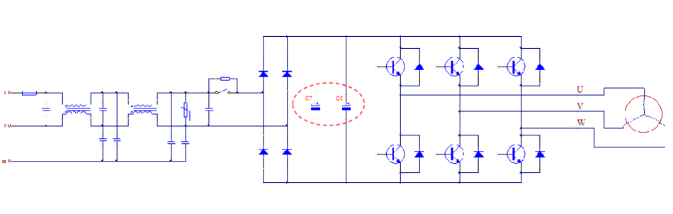 以變頻空調(diào)內(nèi)的三相逆變電路為例,鋁電解電容器在其中發(fā)揮了低頻濾波和儲(chǔ)能緩沖的重要作用。